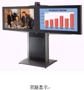 為在視頻會(huì)議中提供更高效的應(yīng)用,視頻會(huì)議產(chǎn)品制造商不約而同地提出了"雙流"的概念。其中以POLYCOM的PEOPLE+CONTENT(人物+內(nèi)容)和TANDBERG的Duo Video(雙路視頻傳送)為代表。