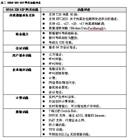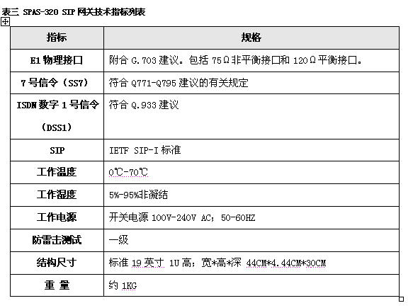 5.SPAS-320 VOIP網(wǎng)關(guān)技術(shù)指標(biāo)