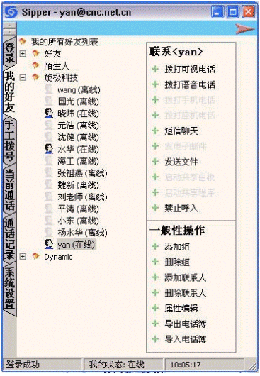 sipper能夠?qū)崿F(xiàn)視頻、語音、IM等功能,它安裝和使用都非常簡單,便捷,該軟件完全支持SIP協(xié)議,并且能夠與MSN互通互連,能夠提供清晰的視頻圖像。在運(yùn)行SIPPER時(shí),它占用PC機(jī)的系統(tǒng)資源很少,不會(huì)影響到其他的軟件使用,并且可以根據(jù)具體情況調(diào)整軟件資源的占用。該軟件的功能模塊易于移植到嵌入式系統(tǒng)中,它擁有良好的功能擴(kuò)展性,例如:三方通話、定制工作安排、備忘錄、支持多個(gè)IM會(huì)議室等。