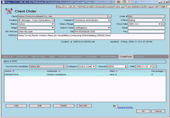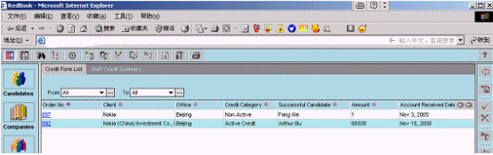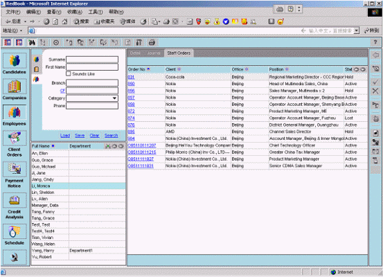 融博獵頭業(yè)務(wù)管理系統(tǒng)已經(jīng)被某著名的獵頭公司正式上線,該系統(tǒng)同時在北京、上海等五個分公司使用。根椐使用客戶反映,該系統(tǒng)功能強大、操作簡單,基本覆蓋了獵頭業(yè)務(wù)的全部內(nèi)容;各種業(yè)務(wù)流程規(guī)范、流暢;各類統(tǒng)計報表靈活、準(zhǔn)確;自動生成簡歷、客戶提交報告、催款通知、項目進度報告,極大地提高了企業(yè)的工作效率。該系統(tǒng)與目前國際先進的獵頭公司所使用的系統(tǒng)相比,處于領(lǐng)先的地位。