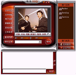 客戶端運(yùn)行簡(jiǎn)單、快捷:只需在網(wǎng)絡(luò)中的PC機(jī)上裝上攝像頭和耳麥,無需任何其他的硬件配置,就可以實(shí)現(xiàn)面對(duì)面的雙方通話,并且采用最流行的OCQ操作模式,更利于普及使用;