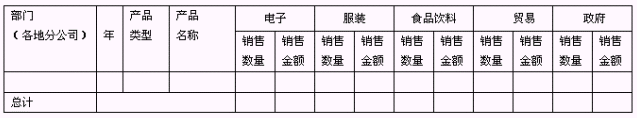 作為分公司銷售經(jīng)理,需要查看分公司每個銷售員的銷量統(tǒng)計,便于向銷售總監(jiān)做好匯報,需要同時知道不同產(chǎn)品類型的銷量?梢酝ㄟ^分組報表來實現(xiàn),如下圖: