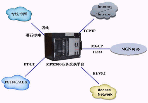 MPS2000增值業(yè)務(wù)應(yīng)用交換平臺豐富的信令協(xié)議和接口,使平臺具備了強(qiáng)大的組網(wǎng)能力。
