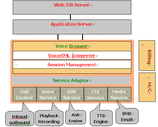 采用面向?qū)ο蠓治龊驮O(shè)計(jì),基于VoiceXML的規(guī)范,使系統(tǒng)具有靈活的體系結(jié)構(gòu)和便捷的可視化業(yè)務(wù)生成環(huán)境。
