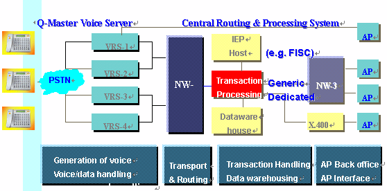 YesMobile的Q-system 包含了消費者端的酷管家Q-Master 以及企業(yè)端的Q-Center,它是一個信息化服務(wù)的系統(tǒng)平臺,它可以幫助解決多種存取裝置的問題。典型的用戶端設(shè)備就是酷管家(Q-Master),它是配備液晶顯示(LCD)的信息查詢及交易終端機(jī),使用ADSI通訊規(guī)格,具有呈現(xiàn)聲音及資料的功能及提供親切的人機(jī)界面。