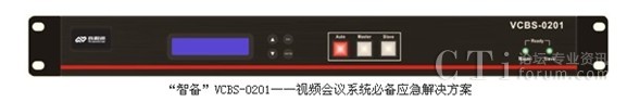 在視頻會(huì)議召開的過程中,主會(huì)場(chǎng)視頻終端等設(shè)備如果發(fā)生故障時(shí)其音視頻信號(hào)會(huì)發(fā)生中斷,由此將會(huì)使整個(gè)視頻會(huì)議無法繼續(xù)進(jìn)行,傳統(tǒng)的解決辦法是配置第二套視頻終端作為冷備份,當(dāng)主設(shè)備發(fā)生中斷時(shí)由系統(tǒng)維護(hù)人員以手工方式切換至備用設(shè)備。北京真視通自主研發(fā)的智備(產(chǎn)品型號(hào):VCBS-0201),解決了主會(huì)場(chǎng)主備終端的自動(dòng)、快速、無縫切換的問題。