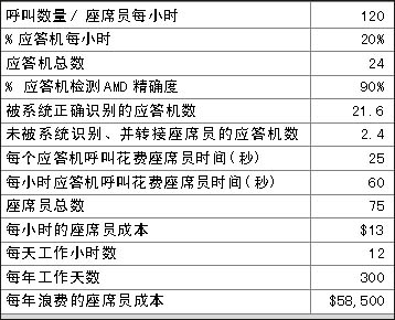 表1和表2表明在一個呼叫中心中精確的應(yīng)答機檢測(AMD)給企業(yè)所帶來的價值,兩表之間關(guān)于呼叫中心運營的費用每年相差$175,500。那么不同的AMD精確度意味著什么?在上例中,精確度每增加1%意味著每年會減少約$5,850的損失。