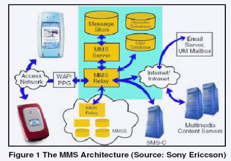 本概述提供了有關(guān)MMS標(biāo)準(zhǔn)的簡(jiǎn)要介紹,主要針對(duì)視頻內(nèi)容交換方面的內(nèi)容。基本的MMS網(wǎng)絡(luò)架構(gòu)如圖 1。