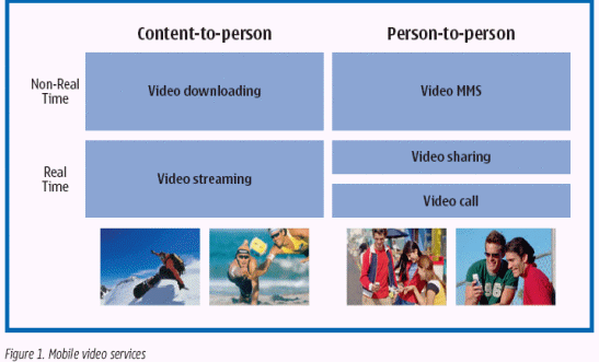 移動終端上的P-to-P視頻通信是從"視頻短信"或視頻MMS開始的,也是基于靜態(tài)圖片的多媒體短信的自然發(fā)展。視頻錄像,現(xiàn)在已經(jīng)被廣泛應(yīng)用在有攝像功能的手機(jī)上,它允許用戶去錄制一段視頻片段并將之通過多媒體短信發(fā)送給他人的移動終端。如果接收的終端功能支持并允許,則可在該終端上打開并回放播放片段,或?qū)⑵伪4嬖诮K端內(nèi)存中。
