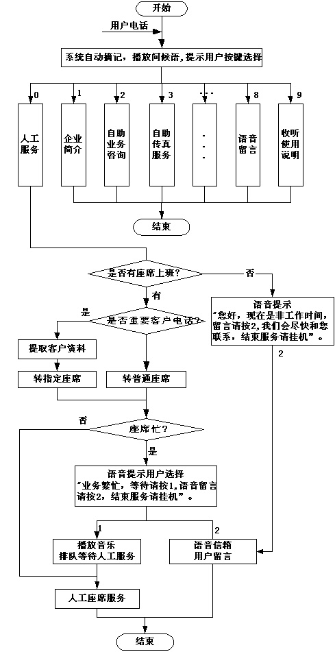 ·用戶(hù)撥入系統(tǒng)后,用戶(hù)根據(jù)語(yǔ)音提示按鍵選擇業(yè)務(wù)功能。由IVR交互式語(yǔ)音應(yīng)答完成自助 式業(yè)務(wù)查詢(xún)、業(yè)務(wù)查詢(xún)等聲訊服務(wù)。如需人工服務(wù),按0隨時(shí)轉(zhuǎn)人工接通座席,以減輕人工服務(wù)壓力。
