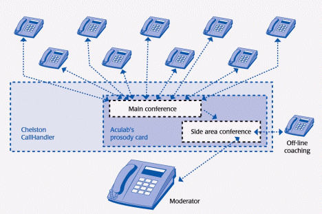 Prosody在同一時(shí)間內(nèi)可實(shí)現(xiàn)248方會(huì)議。RNIB的解決方案能夠同時(shí)進(jìn)行3個(gè)會(huì)議,每個(gè)會(huì)議可達(dá)10個(gè)參與者。之所以限定在10個(gè)參與者之內(nèi),主要是便于盲人或視弱的管理人員管理。此外,也確保了會(huì)議管理員能夠從RNIB的WAN 電話網(wǎng)絡(luò)或辦公室及家居電話網(wǎng)絡(luò)接入。與會(huì)者中的一員可以根據(jù)需要與管理員進(jìn)行一對(duì)一談話。