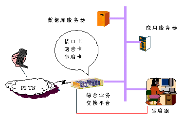該系統(tǒng)采用微機(jī)板卡方案,在實(shí)現(xiàn)常規(guī)功能的同時(shí)與當(dāng)?shù)氐慕鸷贽k公網(wǎng)建立物理聯(lián)接,充分利用已有網(wǎng)絡(luò)資源并尊重客戶原有業(yè)務(wù)習(xí)慣及流程。