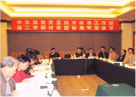 2005年10月24日,中文語(yǔ)音交互技術(shù)標(biāo)準(zhǔn)工作組在北京九華山莊召開了"中文語(yǔ)音交互技術(shù)標(biāo)準(zhǔn)工作組第二次全體會(huì)議暨標(biāo)準(zhǔn)審定會(huì)議"。本次會(huì)議除了進(jìn)行標(biāo)準(zhǔn)工作組年度工作討論外,還進(jìn)行了兩項(xiàng)國(guó)家語(yǔ)音標(biāo)準(zhǔn)的審議。參加這次會(huì)議的代表除工作組全體成員單位外,還邀請(qǐng)了8位業(yè)界著名的語(yǔ)音和標(biāo)準(zhǔn)化專家參加對(duì)兩項(xiàng)國(guó)家標(biāo)準(zhǔn)的審議。其中在本次會(huì)議上待審定的兩項(xiàng)國(guó)家標(biāo)準(zhǔn)為安徽中科大訊飛信息科技有限公司提出的《中文語(yǔ)音合成系統(tǒng)通用技術(shù)規(guī)范》(20030188-T-339)和中國(guó)科學(xué)院自動(dòng)化研究所提出的《中文語(yǔ)音識(shí)別系統(tǒng)通用技術(shù)規(guī)范》(20030190-T-339)。