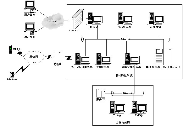 對于不同類型消息呼入、呼出的外圍系統(tǒng)設計遵循模塊化原則;系統(tǒng)內部消息流滿足格式統(tǒng)一、可操作性統(tǒng)一、開發(fā)接口統(tǒng)一等特點。在軟、硬件選型上,充分考慮系統(tǒng)的穩(wěn)定性、開放性、經(jīng)濟性,根據(jù)不同的系統(tǒng)規(guī)模進行詳細論證。