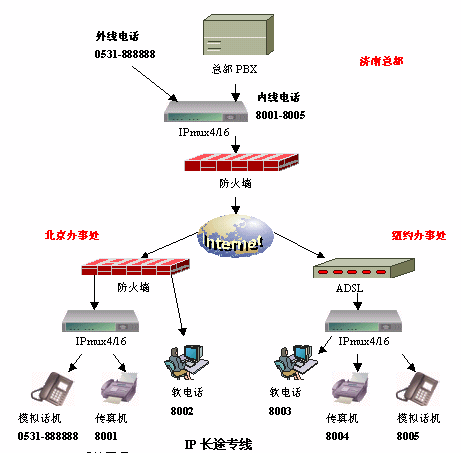 IP長(zhǎng)途專線系統(tǒng),完全針對(duì)政府、企業(yè)等的駐外辦事機(jī)構(gòu)與總部之間的密切聯(lián)系而設(shè)計(jì),使辦事處輕松擁有來(lái)自總部的長(zhǎng)途電話專線,令溝通更加迅捷,而且完全免除長(zhǎng)途話費(fèi)的困擾,安裝和使用都極其簡(jiǎn)單,無(wú)需對(duì)原有電話設(shè)備進(jìn)行任何改造。