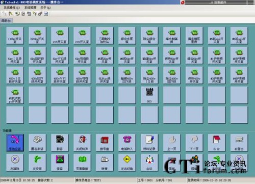 調(diào)度員通過觸摸屏(或者鍵盤鼠標(biāo))控制操作調(diào)度系統(tǒng),操作臺可以使用12個功能頁頁面。每個頁面共有22個功能按鍵和55個調(diào)度業(yè)務(wù)按鍵,55個調(diào)度業(yè)務(wù)按鍵可以根據(jù)具體調(diào)度業(yè)務(wù)需要靈活地編輯設(shè)置成直通呼叫鍵或組呼鍵。