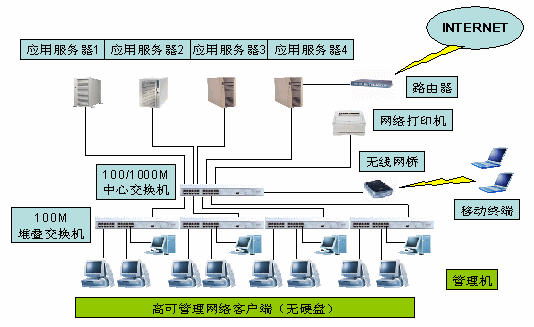 2、 部署一套操作系統(tǒng)系統(tǒng)和應(yīng)用軟件就可以最多為60臺(tái)終端使用。