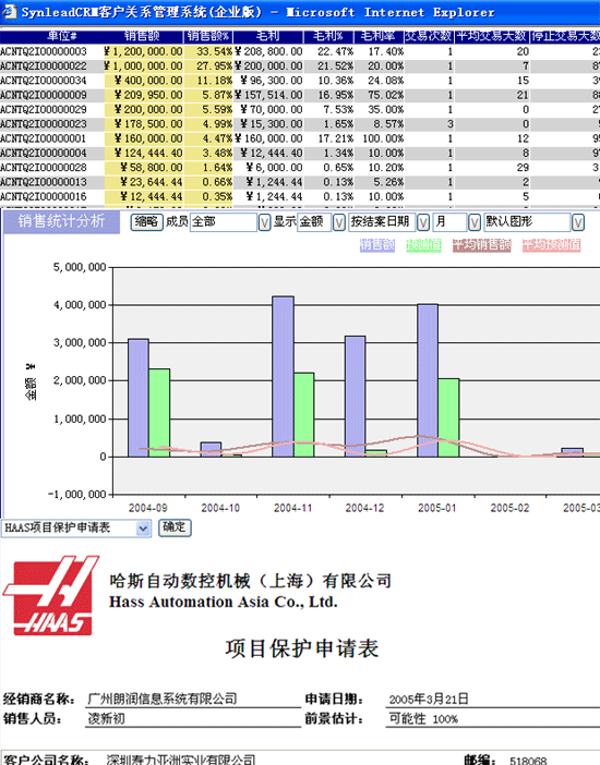 ,"可擴展樣式語言轉換")來制作。這種語言也是通用的,并且容易掌握。為了獲得更強大的功能,XSLT允許插入Javascript等一些其他語言或者插件。在這些語言的操縱下,結果樹的輸出形式是非常靈活的。下圖是國內知名的CRM軟件--SynleadCRM企業(yè)版將其XML數據源轉換成的一些報表和圖表: