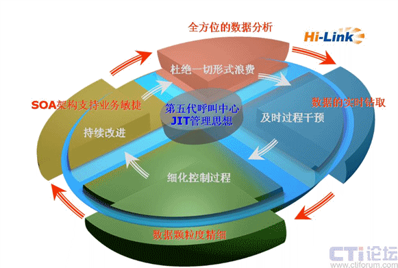 第五代呼叫中心JIT管理思想是商路通公司在總結(jié)大量第五代呼叫中心工程實(shí)施案例并和眾多呼叫中心運(yùn)營(yíng)管理專家一起總結(jié)并提出的針對(duì)呼叫中心的管理思想。其具體內(nèi)涵包括杜絕一切形式的浪費(fèi),及時(shí)過程干預(yù)和細(xì)化控制過程等要素,最終目的是持續(xù)改進(jìn)企業(yè)的業(yè)務(wù)流程,達(dá)成企業(yè)的服務(wù)及經(jīng)營(yíng)目標(biāo)。