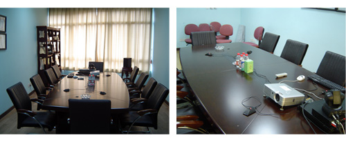 這是在一間典型的會議室中使用audec多媒體語音引擎做視頻會議回音消除的測試。會議室是一個5M*3M*3M大小的空間,3面墻是水泥墻,沒有裝飾,屋頂是不帶孔的光滑吊頂,另外一面是玻璃,地板是實木復合地板,所以整個會議會議室內(nèi)的回聲反射比較強烈,并且我們還在會議室內(nèi)安置了分別指向不方向的四個高靈敏度介面麥克風。