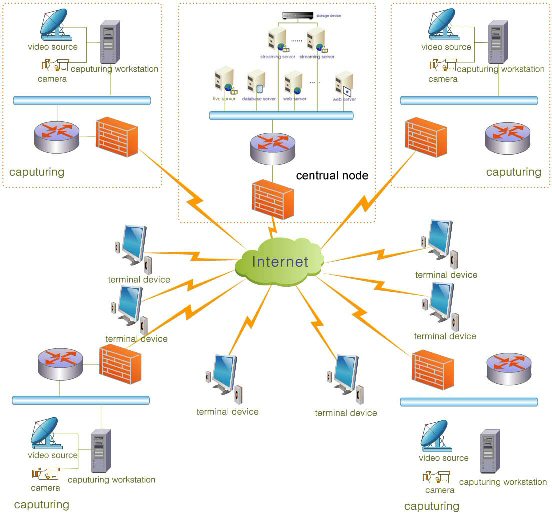 2.   所有的部門的直播系統(tǒng)主要是進(jìn)行現(xiàn)場會議的直播和現(xiàn)場活動的直播,直播信號通過WebLIVE視頻直播采集系統(tǒng)編碼壓縮,通過局域網(wǎng)上傳到總公司的中心機(jī)房,實時發(fā)布。采集同時,將直播的數(shù)字信號存儲為AVI文件,上傳到放置在視頻點播服務(wù)器內(nèi),供其它部門的同事進(jìn)行事后的點播。