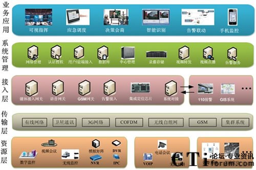 科達(dá)應(yīng)急可視指揮系統(tǒng)采用NGN架構(gòu),使用分層方式設(shè)計,可分布式部署,支持平滑擴(kuò)容和多級平臺級聯(lián),能夠?qū)崿F(xiàn)系統(tǒng)的大規(guī)模部署。平臺以統(tǒng)一的管理界面和技術(shù)標(biāo)準(zhǔn)將會議、監(jiān)控等所有圖像資源整合在應(yīng)急可視指揮系統(tǒng)中。通過各種接入網(wǎng)關(guān),與現(xiàn)有的電話會議系統(tǒng)、無線對講系統(tǒng)、110接警系統(tǒng)、GIS地理信息系統(tǒng)等實現(xiàn)對接。不僅能夠?qū)崿F(xiàn)傳統(tǒng)的視頻監(jiān)控和視頻會議,還能提供可視指揮、應(yīng)急調(diào)度、決策會商、告警聯(lián)動、手機(jī)監(jiān)控等多種業(yè)務(wù)應(yīng)用。