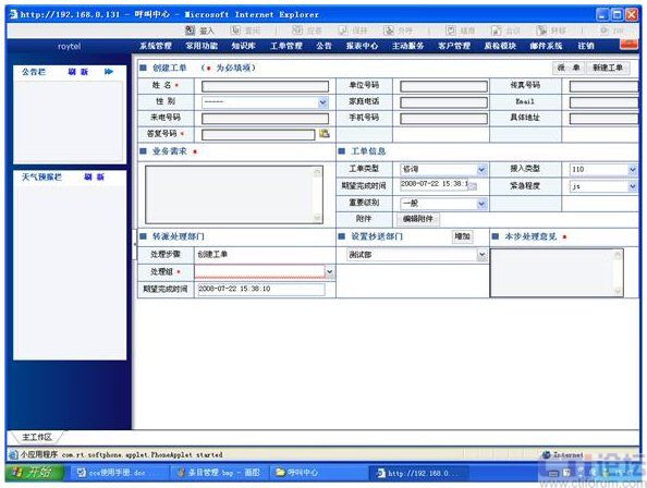 融天科技多媒體呼叫中心可同時支持電話、留言、郵件、傳真、短信、視頻、Web-Call等全方位的服務(wù)模式,包括自動呼叫分配、呼叫排隊、座席分組、客戶資料自動彈屏、運營監(jiān)控、統(tǒng)計分析等全套的呼叫中心功能,座席應(yīng)用界面也是采用非常友好全中文Web方式(下圖為標(biāo)準(zhǔn)界面,融天科技的研發(fā)團隊可為您非常靈活的定制企業(yè)個性化的功能及界面):