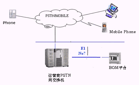彩話(BGM-- Background Music)業(yè)務(wù),就是在雙方通話過(guò)程中播放的由用戶事先點(diǎn)播的背景音樂(lè)。這項(xiàng)業(yè)務(wù)更多的作為一種精神消費(fèi)時(shí)尚,電信運(yùn)營(yíng)商可作為一種時(shí)尚推出,可以定位為帶背景音樂(lè)的電話業(yè)務(wù)。BGM與CRBT(彩鈴業(yè)務(wù))技術(shù)原理基本相同,具體來(lái)說(shuō),就是申請(qǐng)業(yè)務(wù)的用戶可以通過(guò)多種方式設(shè)置或管理在與他人通話時(shí)的背景音樂(lè),這項(xiàng)業(yè)務(wù)可以兩種方式來(lái)實(shí)現(xiàn),當(dāng)然,無(wú)論何種模式都不影響交換機(jī)的原有通話業(yè)務(wù)。