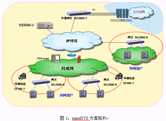 mindSYS解決方案基于軟交換技術構建,是專門為了解決行業(yè)用戶、虛擬運營商的數據、語音、視頻等綜合業(yè)務提出的,在解決方案中,把企業(yè)的專網和公網連接了起來,企業(yè)使用IP語音技術可以將語音、數據和多媒體通信融合在一個集成的網絡中,實現了廣域網內端到端設備的互打,穿透NAT,能控制數據流量,保證語音質量,充分利用企業(yè)租用的數據線路資源,節(jié)省長途話費等等。解決了與企業(yè)內部通信系統無縫對接技術等技術難題,為用戶提供真正享受的端到端的VoIP語音服務,提高企業(yè)的辦公效率,并且增強企業(yè)的綜合競爭力,使得現代化企業(yè)在信息化和辦公自動化方面走在同行業(yè)的前列。