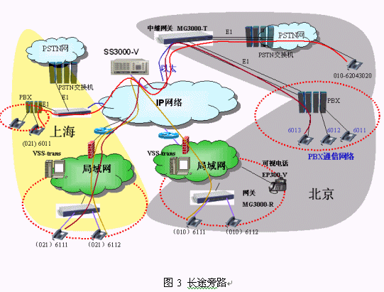 我們建設mindSYS系統的時候基本上不改變原來PBX的布線和配置,PBX原來的數字中繼直接連接到運營商的程控交換機,我們現在只是將PBX的數字中繼連接到中繼網關MG3000-T。PBX通信系統的電話完全沒有改變,還使用原來的電話號碼,打分機直接撥小號,打外線先撥0。mindSYS系統下的電話使用方式也完全一樣,對用戶來說就是一套系統。如北京的6011可以直接撥打6111,6111用戶也可以直接撥打6011,6111打外線先撥0,如062043020。北京的用戶呼叫異地用戶需要撥打完整號碼(大號),如北京的6011用戶撥0216111就可以接通上海的用戶,反之亦然。mindSYS系統的電話(圖2的所有電話)之間通話都免費。這樣我們的行業(yè)用戶可以既不改變原來的使用習慣,又能夠靈活的規(guī)劃各地的電話號碼來完成一個大型的跨地域的電話系統。
