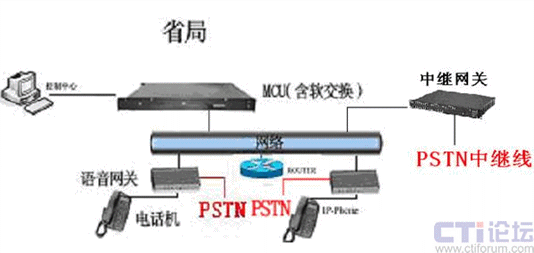將普通電話與PSTN線路連接到帶路由逃生的語音網關上,當撥打內部電話的時候,語音網關會通過內部網絡找到MCU軟交換上注冊的電話號碼,完成與所需呼號的地市之間的通訊;當撥打外部電話時,系統(tǒng)會到MCU軟交換上尋找所撥打的電話號碼,如果尋找不到,則語音網關將啟動逃生功能,自動轉向PSTN線路,與外線用戶建立連接。則無論呼叫PSTN電話還是分機機構電話,都可以直接撥號;分支機構也可以通過該E1呼入省公司分機。原有E1中繼作為PSTN呼入時使用,保留原有PSTN號碼。