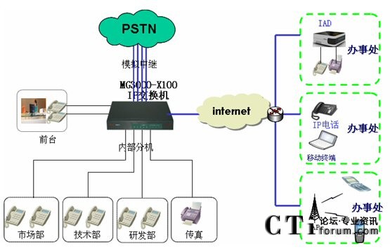 MG3000-X100替代傳統(tǒng)PBX交換機應用方案