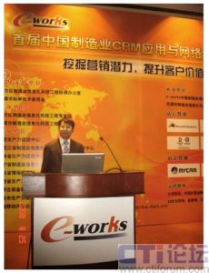 MyCRM于4月25日在天津參加了由e-works 主辦的主題為“挖掘營銷潛力,提升客戶價(jià)值”的“首屆中國制造業(yè)CRM應(yīng)用與網(wǎng)絡(luò)營銷年會(huì)”。國內(nèi)外優(yōu)秀知名CRM廠商MyCRM、微軟、賽捷、TurboCRM齊集本屆年會(huì)。并就中國制造業(yè)CRM應(yīng)用及圍繞中國制造企業(yè)如何進(jìn)行管理創(chuàng)新、營銷創(chuàng)新和服務(wù)創(chuàng)新等方面進(jìn)行了演講。