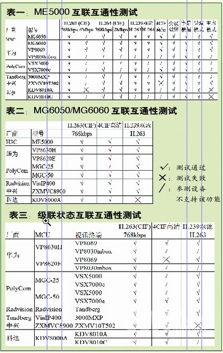 上述3組測(cè)試表明,ME5000和MG6050/MG6060能夠與參測(cè)的所有產(chǎn)品互聯(lián)互通,并保證絕大部分主流應(yīng)用的正常運(yùn)行,這充分肯定了研發(fā)部門所做的工作。其實(shí),在第二組測(cè)試中,我們將MG6050/MG6060交由其他MCU管理的同時(shí),也加入了所有視訊終端,以便測(cè)試這些廠商之間的互聯(lián)互通性。但測(cè)試結(jié)果非常不理想,有些甚至無(wú)法正常連接。由于缺少這些廠商工程師的支援,我們無(wú)法定論它們之間的兼容性問(wèn)題,但能夠確定的是,前文所提及的H.239雙視頻流傳送、H.264視頻編解碼以及4CIF高清規(guī)格視頻3個(gè)特性確實(shí)是影響互聯(lián)互通性的關(guān)鍵,廠商如果想改善這個(gè)現(xiàn)狀,進(jìn)行針對(duì)性研發(fā)是必需的。