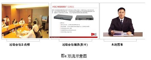 雙視頻流傳輸是指同時(shí)傳輸兩路動(dòng)態(tài)視頻到各分會(huì)場(chǎng):雙流是指分會(huì)場(chǎng)能夠?qū)⒈緯?huì)場(chǎng)的兩路視頻同時(shí)傳輸?shù)組CU上,MCU 能夠?qū)陕芬曨l同時(shí)傳輸?shù)礁鞣謺?huì)場(chǎng)。ME5000與MG6060配合可以將終端第二路視頻傳輸?shù)狡渌麜?huì)場(chǎng),適用于在開(kāi)會(huì)的同時(shí),對(duì)文件、圖片講解,使會(huì)議更加生動(dòng),內(nèi)容更加豐富。