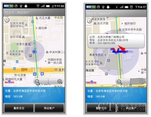 其二,打天下2.0新增了LBS的服務(wù)功能,原有的打天下只能實(shí)現(xiàn)拍照上傳、簽到等簡(jiǎn)單功能應(yīng)用,而新版本則可以提供check的位置服務(wù),通過(guò)check可以在地圖上顯示標(biāo)記地點(diǎn)周邊分布的客戶地理位置信息,極大方便了外勤員工的路線制訂。