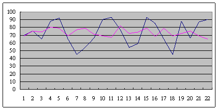 從平均數(shù)的分析方法來看,兩個呼叫中心這段時間的平均服務水平都是一樣的,都是73,但從方差的角度來看,這兩個呼叫中心內部的管理,卻是非常不一樣的,兩條線的方差就是明顯不一樣(或是說標準差)。