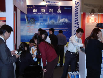 2005年5月18日在北京長城飯店召開的《2005中國IP語音網(wǎng)絡(luò)、軟交換及SIP研討會暨展覽會》上,海狼科技展臺前人頭攢動,很多商家對海浪科技技術(shù)和產(chǎn)品的表現(xiàn)感到相當滿意,并有新加坡、臺灣客戶現(xiàn)場購買產(chǎn)品。
