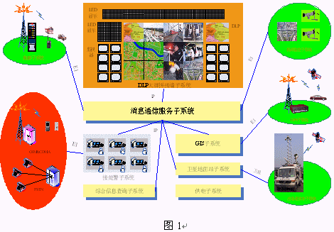消息隊(duì)列服務(wù)器采用國(guó)際領(lǐng)先的計(jì)算機(jī)支持的協(xié)同技術(shù)進(jìn)行設(shè)計(jì)開發(fā),實(shí)現(xiàn)三臺(tái)合一指揮調(diào)度系統(tǒng)眾多子系統(tǒng)間的無縫集成,包括數(shù)據(jù)流(包括信令)的集成、工作流的集成、應(yīng)用的集成、信息的集成、語(yǔ)音鏈路的集成。它是好易通科技三臺(tái)合一指揮調(diào)度系統(tǒng)所有子系統(tǒng)之間進(jìn)行TCP/IP消息傳遞的中轉(zhuǎn)站,負(fù)責(zé)消息的分發(fā)和系統(tǒng)協(xié)同功能。它提供了接處警座席子系統(tǒng)、GIS警用地理信息子系統(tǒng)、集群通信系統(tǒng)、GPS衛(wèi)星定位子系統(tǒng)、視頻監(jiān)控子系統(tǒng)、大屏幕顯示子系統(tǒng)、應(yīng)急通信車子系統(tǒng)、綜合信息查詢子系統(tǒng)之間相互數(shù)據(jù)通信的接口,如圖1所示。