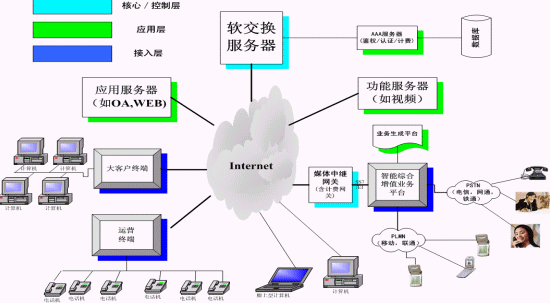 在此基礎(chǔ)下電信、網(wǎng)通、移動、聯(lián)通、鐵通、衛(wèi)通等電信運營商可用來做下一代網(wǎng)絡(luò)(NGN)業(yè)務(wù)及運營,虛擬電信運營商和增值業(yè)務(wù)服務(wù)商、新興電信運營商開展各種電信運營、增值業(yè)務(wù)和搶占語音市場的利器,政府和企業(yè)辦公的即時通信平臺和呼叫中心平臺、信息服務(wù)、管理平臺。