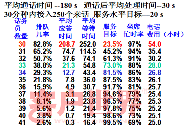 服務(wù)水平=SL(座席數(shù),服務(wù)目標(biāo)基準(zhǔn)時長,通話量,服務(wù)時長)