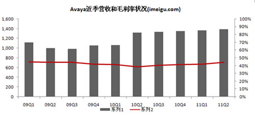 2008、2009、2010財(cái)年Avaya總營收分別為49.23億美元、41.50億美元、50.60億美元,2009財(cái)年?duì)I收受宏觀經(jīng)濟(jì)(金融海嘯)因素影像而出現(xiàn)15.7%的下降,2010財(cái)年Avaya公司收購原北電的企業(yè)通信部門(NES),受此合并報(bào)表影響和經(jīng)濟(jì)復(fù)蘇因素,2010財(cái)年?duì)I收相比2009財(cái)年增長21.9%。
