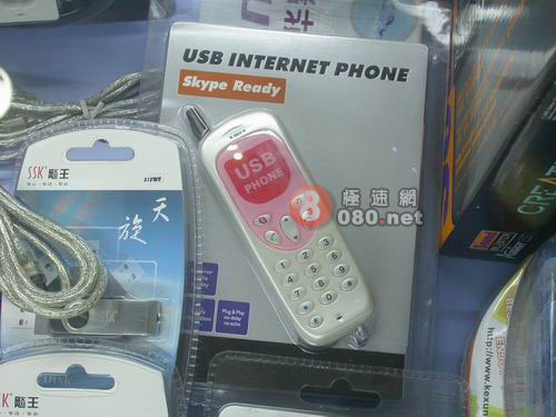 最近我們?cè)谥榻飞暇鸵姷搅藢iT為VoIP通話所設(shè)計(jì)的電話機(jī),它在外觀上更像是電話子機(jī),不過拖了一根長長的尾巴--USB連接線,只要將它連接到你的電腦主機(jī)上,然后接入寬帶網(wǎng)絡(luò),安裝用于支持網(wǎng)絡(luò)通話的Skype軟件,你就可以同網(wǎng)上其他朋友進(jìn)行即時(shí)通話了,而你所需要做的就是購買一款VoIP電話機(jī)而已,目前市場上有型號(hào)為V521和V920這兩款,售價(jià)分別是85元和120元,有興趣的朋友可以到雄獅國際二樓的“晨晨數(shù)碼”去看一看。