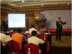 同時此次會議吸引的四川當(dāng)?shù)馗鞔竺襟w關(guān)注,包括:四川電視臺、成都商報、成都日報、人民郵電報、華西都市報、通信技術(shù)雜志等媒體。中寬網(wǎng)信副總裁余輝先生在發(fā)言中更是強調(diào)了對人才的重視,現(xiàn)場邀請有意者加入,共同創(chuàng)造中寬網(wǎng)信的未來。市場部副經(jīng)理韓愛忠先生及一位現(xiàn)場工程師就"10175商務(wù)新天地"的功能、目標(biāo)群體及代理加盟政策及投資效益分析作了精彩的講解,并且在業(yè)務(wù)功能演示環(huán)節(jié)引起了與會嘉賓的濃厚興趣,吸引了眾多加盟商的關(guān)注。