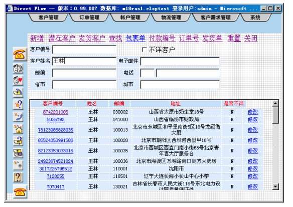 客戶向麥考林定購商品的最常用途徑就是電話訂貨,客戶撥打麥考林服務熱線進入客服系統(tǒng)。系統(tǒng)會根據(jù)客戶的主叫號碼對客戶進行識別,如果識別成功,座席代表屏幕上會自動彈出客戶資料和以往訂貨記錄;如果識別失敗,座席代表可以根據(jù)客戶通報的客戶代碼或姓名等信息查詢客戶資料。如果是新客戶,座席代表可以立即為他創(chuàng)建客戶檔案。