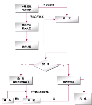 整個(gè)網(wǎng)絡(luò)采用只在集中受理中心設(shè)立一個(gè)集中監(jiān)控系統(tǒng),負(fù)責(zé)監(jiān)控全網(wǎng)的客戶業(yè)務(wù)、服務(wù)、技術(shù)支持和投訴等等業(yè)務(wù),該系統(tǒng)基于事件管理的思想,提供包括創(chuàng)建、解決、分配、反饋、跟蹤、回訪等節(jié)點(diǎn)在內(nèi)的閉環(huán)處理模式。例如系統(tǒng)可以根據(jù)客戶反映問題的時(shí)間以及緊急程度,按照系統(tǒng)約定的處理時(shí)限對處理過程實(shí)時(shí)跟蹤和記錄,當(dāng)處理超時(shí)時(shí)回自動(dòng)給出報(bào)警信息,提示相關(guān)的操作人員及主管人員。同時(shí)根據(jù)約定還可以將受理的問題按照約定的方式自動(dòng)發(fā)送到相關(guān)的處理部門,由處理部門進(jìn)行處理。