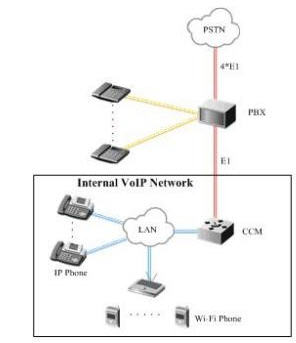 iBG3026,最后在PBX和Ubigate iBG3026之間再開(kāi)通4條E1中繼,同時(shí),Ubigate iBG3026通過(guò)自帶的GE接口接入酒店的辦公局域網(wǎng),這樣即使出現(xiàn)客房人員使用網(wǎng)絡(luò)不規(guī)范的情況發(fā)生,也不會(huì)影響語(yǔ)音服務(wù)的質(zhì)量。