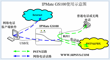 IPMate GS100可以實現(xiàn)Skype電話轉接到PSTN,以市話的費用呼叫IPMate GS100所在地區(qū)的任何固定電話或手機。