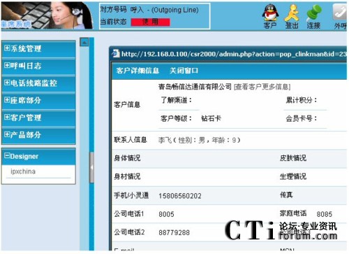 作為呼叫中心的核心功能,來電彈屏功能在客戶和服務(wù)代表之間建立了溝通的橋梁。當(dāng)電話接入客服代表電話振鈴的同時,電腦屏幕會彈出客戶的相關(guān)資料。如果是新客戶,則彈出空白頁面,客服代表可以說歡迎的同時錄入客戶資料,以備客戶下次來電時查詢。當(dāng)客戶在網(wǎng)上選購產(chǎn)品時,有問題可以隨時打電話溝通,來時的同時,座席電腦上彈出客戶已經(jīng)填寫的資料,座席對客戶的資料一目了然,提高了工作效率。來電彈屏的頁面可以根據(jù)用記要求定制。