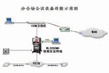在各分會(huì)場,提供100M快速交換以太網(wǎng)端口連接分會(huì)場會(huì)議終端WL-2000MH,以上設(shè)備分別通過綜合信息網(wǎng)提供的100M快速交換以太網(wǎng)接入主會(huì)議系統(tǒng)網(wǎng)。另外,在分會(huì)場預(yù)留一條電話備份線路,也可以用音頻撥號(hào)方式撥入,用參加視頻會(huì)議。